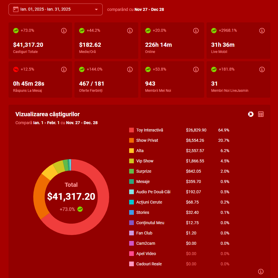 Suntem singurul studio din România care lucrează exclusiv pe un singur site - și anume LiveJasmin. Facem acest lucru dintr-un motiv extrem de simplu : cunoaștem această platformă și avem rezultate excepționale aici de mai bine de 12 ani.