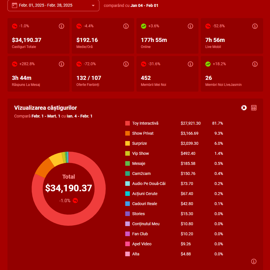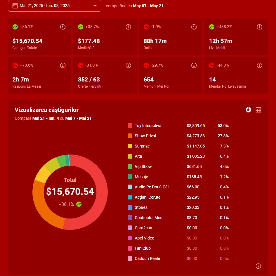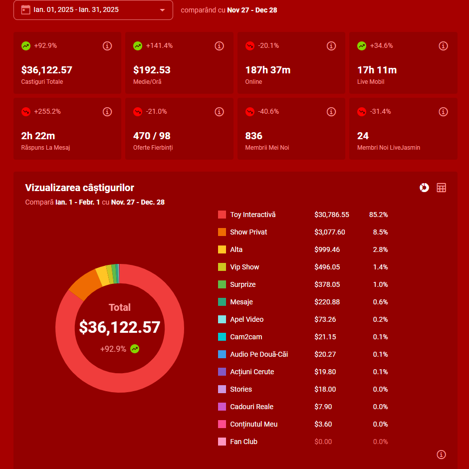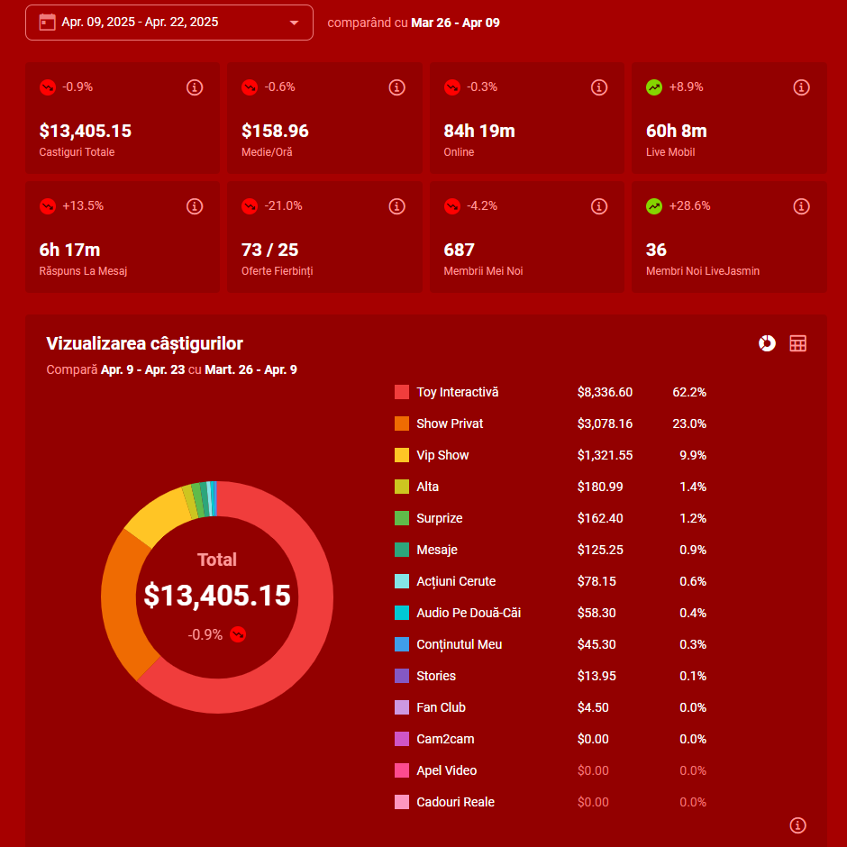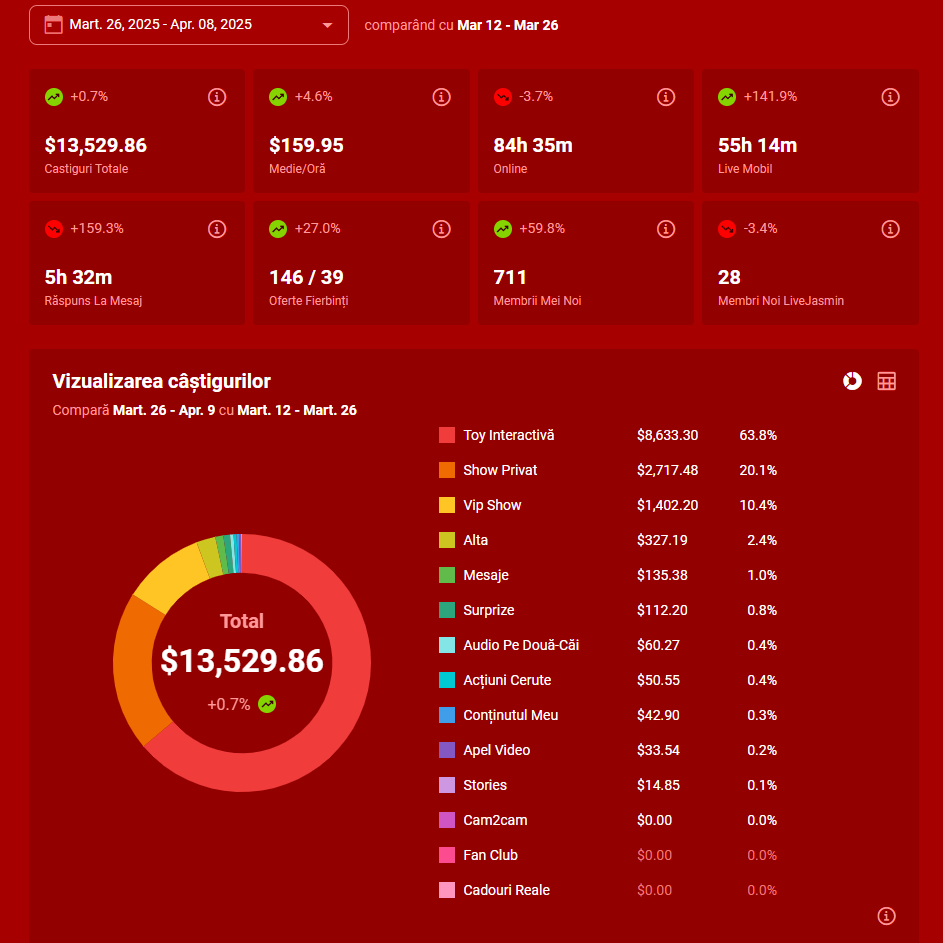Suntem singurul studio din România care lucrează exclusiv pe un singur site - și anume LiveJasmin. Facem acest lucru dintr-un motiv extrem de simplu : cunoaștem această platformă și avem rezultate excepționale aici de mai bine de 12 ani.